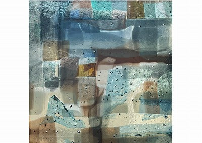 様々なガラスを貼り合わせたモダンで洗練されたデザインミラーです