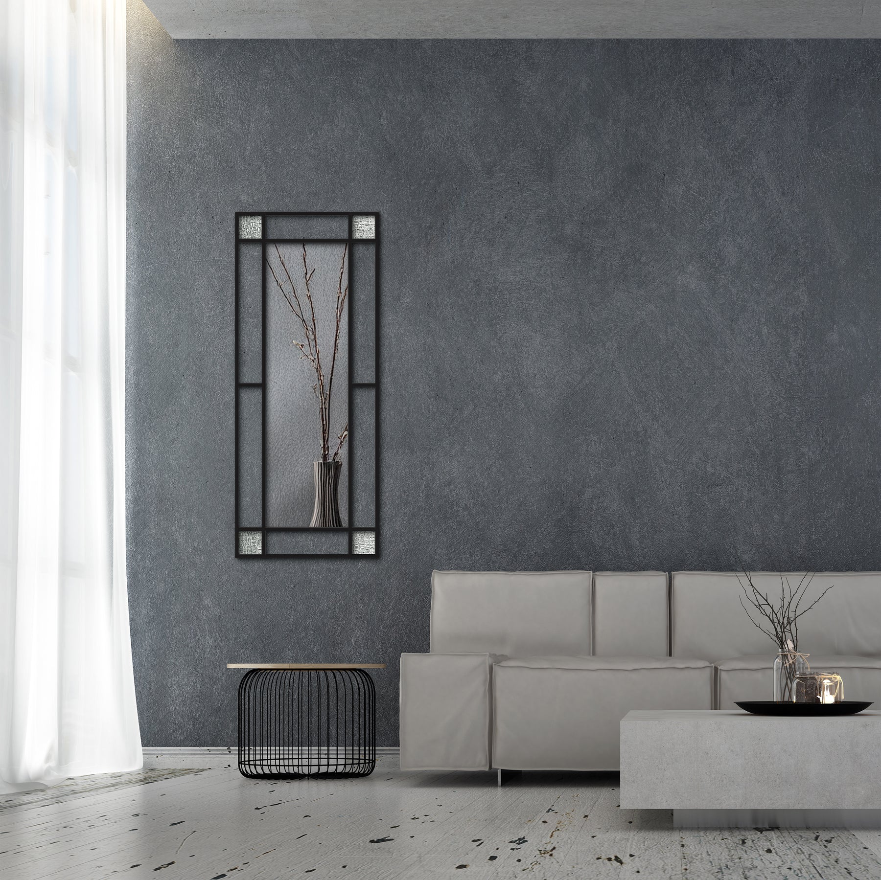 ※ステンドグラス、フュージングガラスは手作りの為、パーツのサイズや量等が異なります※使用されるスチールは壁にビス留めされる為、下地補強(ベニヤ)が必要です